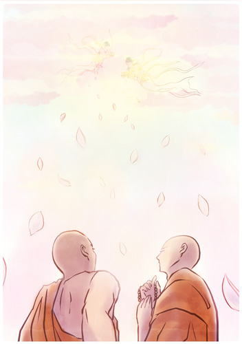 修行者たちは歓喜して 仏に衣を献上し