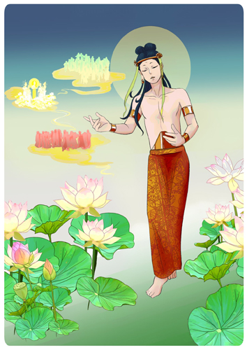 仏 世尊の前に立っている