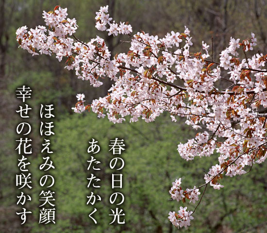 春の日の光あたたかく ほほえみの笑顔 幸せの花を咲かす